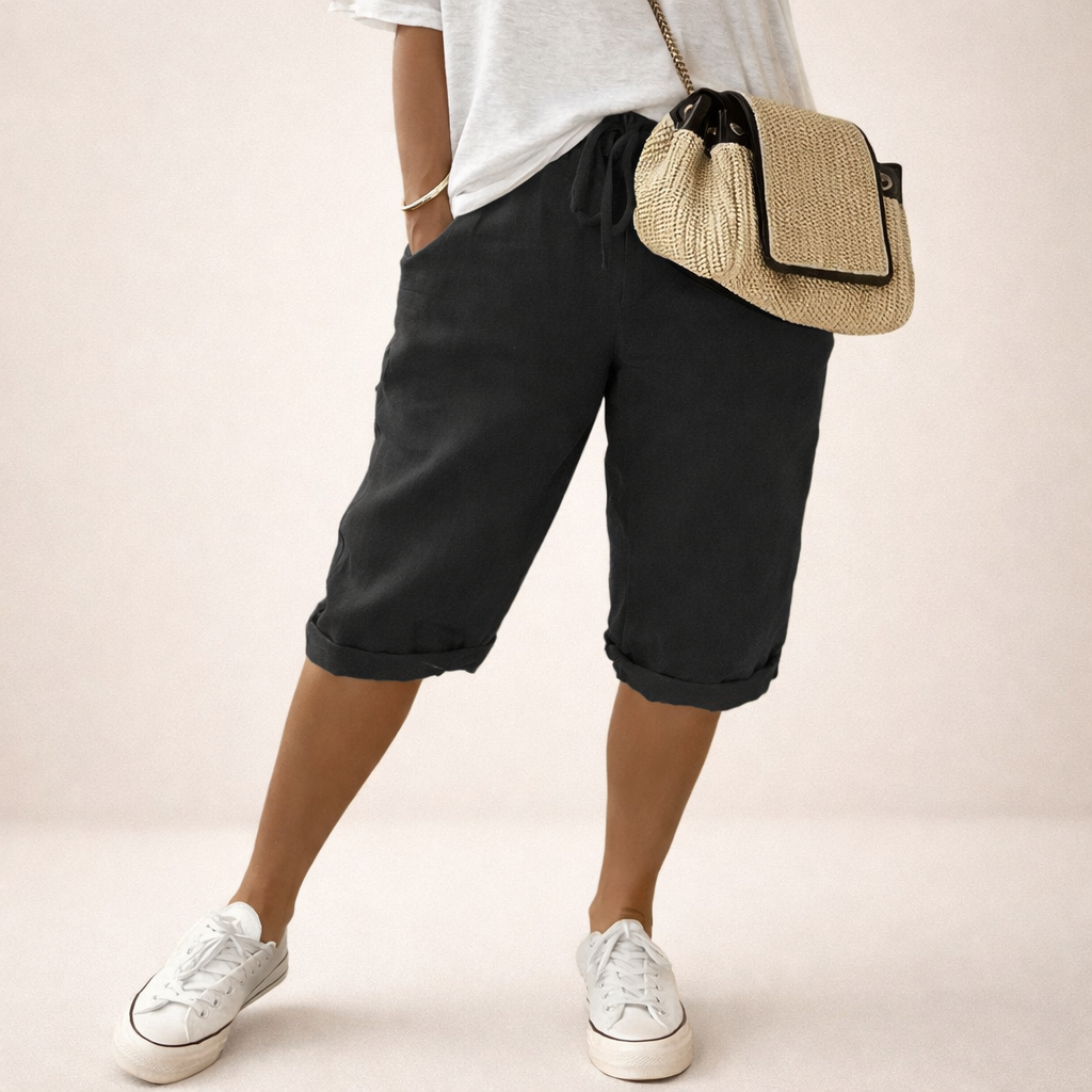 The lightweight and comfortable quality makes the shorts very comfortable to wear all day long. The fit is relaxed and flattering while providing good freedom of movement. The elastic waist with adjustable drawstring provides a flexible fit that easily adapts to the body. The practical pockets and airy design make the shorts both functional and stylish, making them easy to combine with tops, t-shirts or blouses.